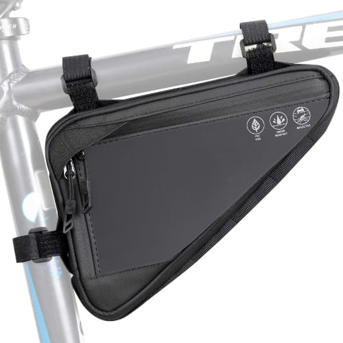 Designed for accessibility, this water-resistant frame bag features a unique three-way installation system and large reflective surfaces to enhance safety during night rides.